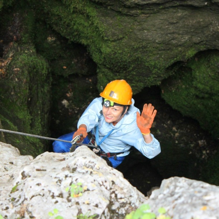Вертикальные пещеры – совершенно другой мир! Забудьте о благоустроенных и подготовленных к экскурсиям горизонтальных полостях, в которых туристы движутся по подмосткам и где на каждом шагу стоят светильники. В вертикальную пещеру необходимо спускаться с помощью специального снаряжения и техники, которой вас обучит инструктор Клуба. Для её посещения нам понадобится тёплая одежда, которую не жалко испачкать, всё та же удобная обувь и налобный фонарик.