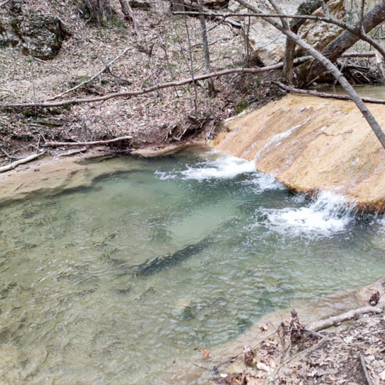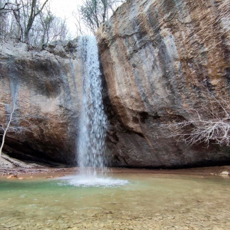 Как же я пойду с этим багажом? – думала я, взваливая на плечи рюкзак и беря палки в руки. А вокруг... чудесная природа Крыма, впереди тропа в горы. На склонах деревца с проклюнувшимися почками и воздух – волшебный воздух весны, бодрящий и манящий вперёд. Позади осталось село Передовое с покосившимися от ветхости домиками. Идти мне, неподготовленному человеку, было тяжело, старалась не обращать внимание на ношу. Зашли в лиственный лес и через некоторое время перед глазами открылось волшебное зрелище – водопад Козырёк – прозрачная завеса воды падает сверху в изумрудное озерцо.