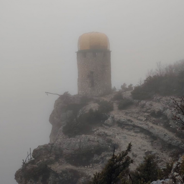 Ранним туманным утром после занятий йогой и завтрака налегке совершили переход по крутым скалистым горам к пещерному городу Челтер-Мармара. Виды с гор были потрясающие! В туманной дали создавалось впечатление, что находишься совсем в другом, неземном мире. По дороге встречалось чудное растение – сон-трава (или прострел крымский). Нежно-сиреневые, словно в белом пушистом пеньюаре, невероятно красивые цветы занесены в Красную книгу.