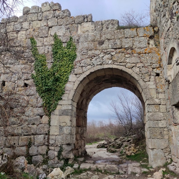 Мангуп – большой город-крепость с тремя линиями обороны – полностью разрушен. Остались части ворот и стен, сложенные из камней, караимский храм, развалины базилики. От места, называемого Кастанедовский мыс, исходит некая сила. Смотря вдаль на раскинувшуюся у ног живописную долину хочется взлететь и парить в воздухе. Оттуда прошли до третьей охранной стены, у которой в древности находилась базарная площадь. За эту стену чужаков не пускали. Ремесленники жили между 2-й и 3-й линиями.