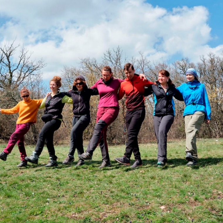 В поход я отправилась с клубом «Неизведанный Мир». Информацию о клубе узнала от знакомой, ходившей с ними в поход еще в 2009 году, и уже тогда появилось желание освоить походный туризм именно с этим клубом. Но как-то всё не складывалось, да и страхи человека, ни разу не ходившего ни в какие походы и привыкшего к некоему комфортному отдыху, тогда были сильны. И вот, в этот раз всё срослось: и время, и место, а главное – душевный настрой. Описание похода «Волшебство весны» звучало очень заманчиво: нестандартный и новый маршрут обещал проходить через живописнейшие уголки Крыма, давая возможность увидеть пещерные города «с неожиданной, неизвестной доселе стороны». Очень привлекла ветка маршрута: Байдарская долина – водопад Козырёк – ущелье Кобалар – грот Фатьма-Коба – стоянка «Гористое» – Спасо-Преображенский скит – пос. Терновка – Челтер-Мармара – Эски-Кермен – Шулдан-Кая – Мангуп-Кале – Челтер-Коба – Сюйреньская крепость – утёс Бурун-Кая – гора Крепость – храм св. Луки – Качинская долина – Бахчисарай. 8 дней и 7 ночей на природе, вдали от цивилизации. В общей сложности прошли 68 км (в день примерно по 5-8 км).
