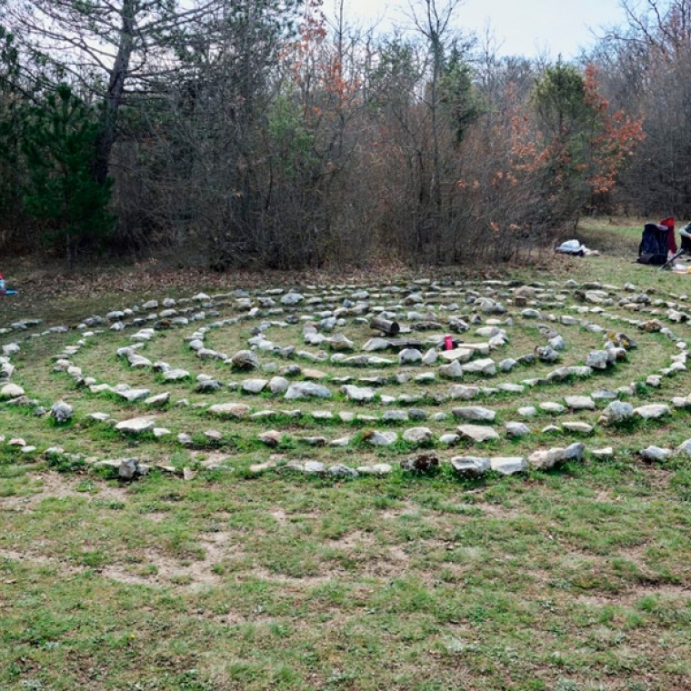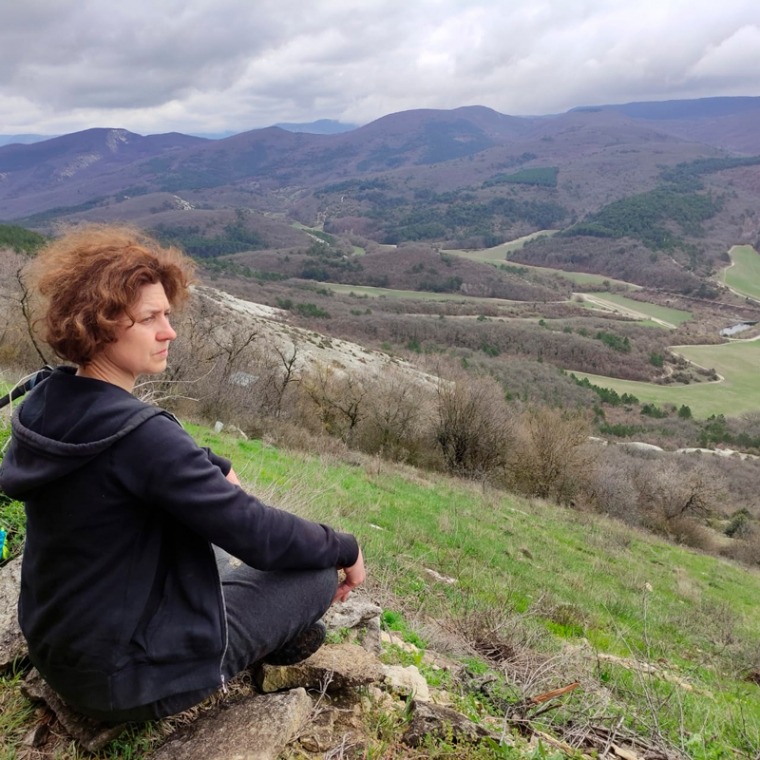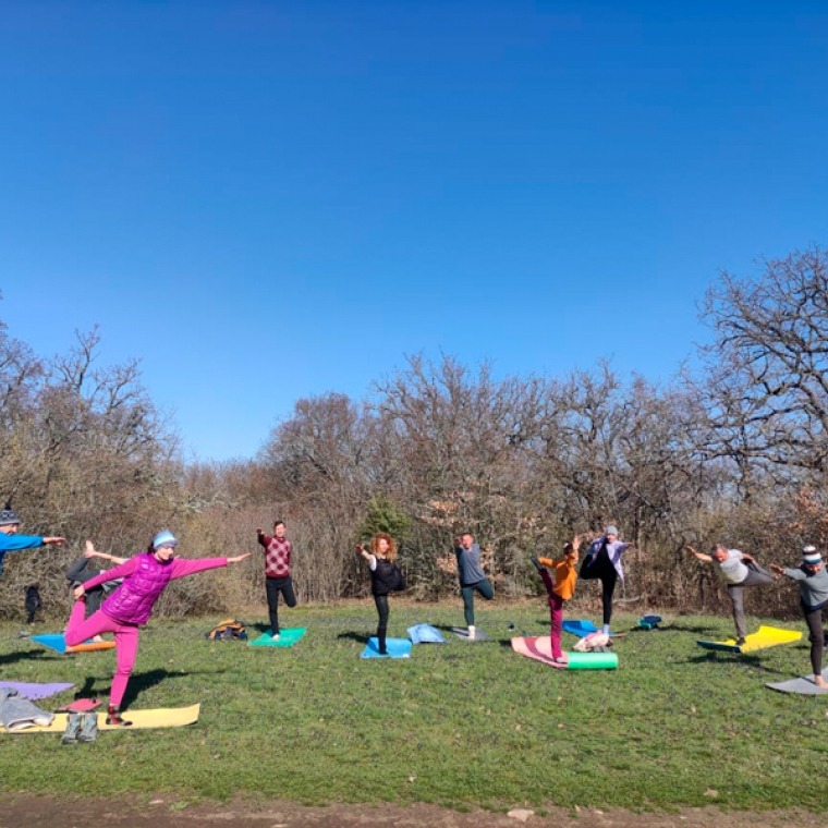 Утром, после йоги посетили местный Благовещенский пещерный мужской монастырь – пожалуй, одно из самых светлых и благостных мест в этих краях. Там, у монахов, запаслись сухариками, т.к. хлеб у нас закончился. Уход с Мангуп-Кале. Прошли мимо большой базилики 15 века. Крутой спуск с горы через лес вниз в долину, в стороне остался караимский некрополь. Прошли по цветущей Каралезской долине мимо скального массива Каралезские Сфинксы. Пошли на другой склон горы в сторону ещё одного пещерного города – Челтер-Коба. В лесу, у подножия гор, на зеленой лужайке, пока готовится обед (рыбный суп) – плетение мандал под музыку для медитаций. Затем крутой подъём по камням в гору и переход через лес до смотровой площадки, откуда справа открывается чудесный вид на долину, вдали виден Чатыр-Даг.