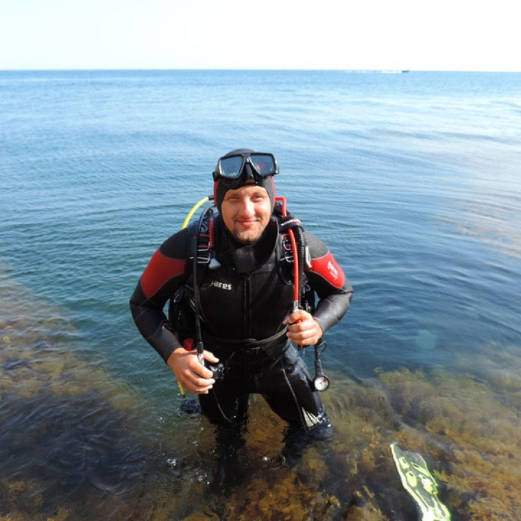 Мы стартуем из посёлка Оленёвка, где вас заберёт транспорт клуба. Минимальный возраст участников – 14 лет. Также рекомендуем ознакомиться со статьёй, в которой перечислены противопоказания для погружений под воду. Перед погружением идёт получасовой брифинг: обучаемся, изучаем знаки, которыми мы будем общаться под водой, привыкаем к оборудованию. Затем следует пробное погружение – до трёх метров. А после, исходя из поведения ныряющего, мы погрузимся на глубину до девяти метров. Для сертифицированных дайверов глубина может быть больше.