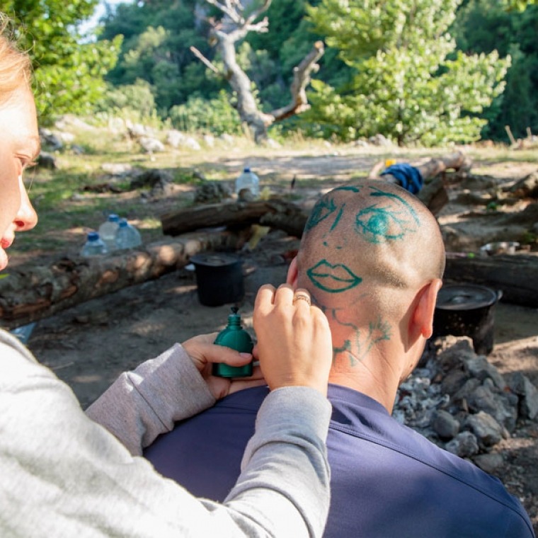 Что не так с нашими лицами? Почему люди недоумённо оборачиваются? Кто-то хихикает, а кто-то ускоряет шаг и обходит. Как будто никогда не видели толпу туристов с разрисованными зелёнкой лицами. А всё начиналось-то с пореза. Одному замазали зелёнкой, а другому за компанию нарисовали татушку на ноге. Вроде бы остановились, когда у каждого было по зелёному рисунку на конечности. Но на следующее утро девочке из группы вновь понадобилась помощь, теперь уже на лице. Дабы не оставлять некрасивое зелёное пятно у глаза, нарисовали морду котика. Зелёнкой. Остальных подкупить на подобное оказалось очень просто – за четвёртую на обед конфету полгруппы подставило лица под зелёную кисть художника. Остальные полгруппы согласились уже за компанию. Так и ходили бандой зеленолицых, распугивая туристов.
