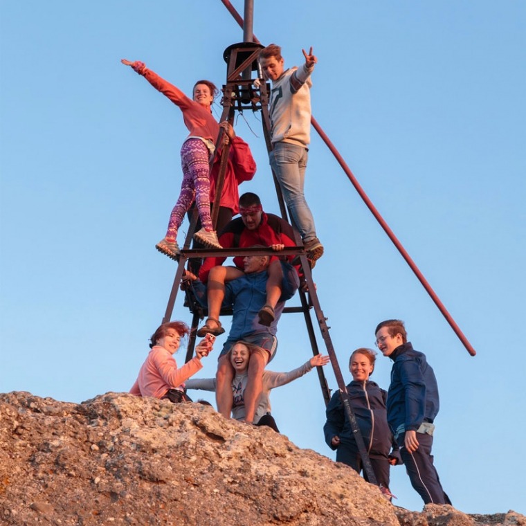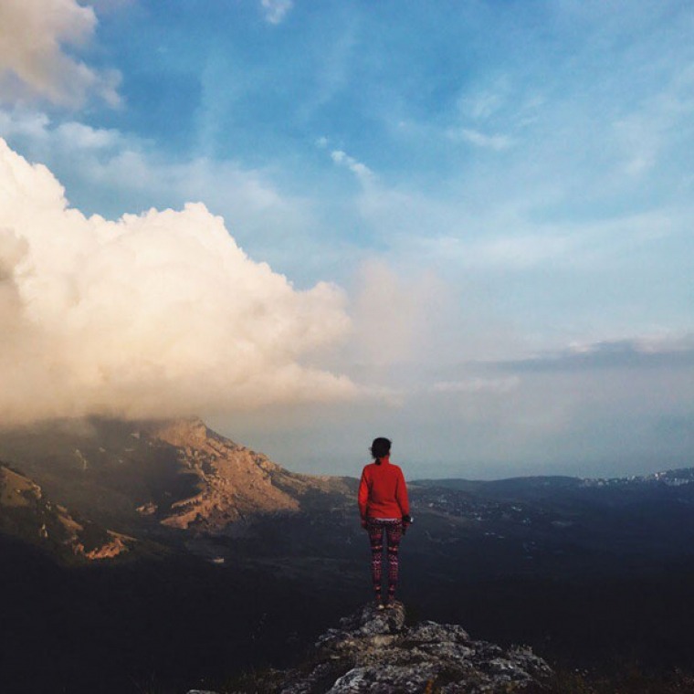 Южная Демерджи. Моя первая гора в Крыму, кстати. Сколько раз тут была уже не помню. Но никогда ведь не забиралась на триангулятор. Да ещё под таким ветром, какого тоже тут раньше не встречала. Стоишь на самой-самой верхушке, выше уже вряд ли забраться. Цепляешься за железную опору. А ветер продувает насквозь, выдувает все мысли из головы. И ничего в мире не остаётся, кроме верхушки триангулятора, да крымских пейзажей. И наших странных лиц.