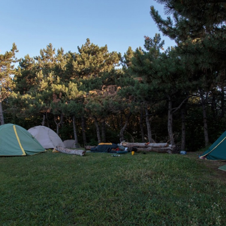 Вот и на этот раз я ставила палатку на тех же полянках, что и неделю назад. И в то же время как будто впервые. Те же тропы, а как будто новые. Вот знакомая полянка перед Лысым Иваном. Тот же вид на Демерджи и Алушту. Казалось бы, что нового можно тут увидеть? Знакомый вид, знакомый склон. О, склон! Удобной, поросший травкой. Никогда не знала, что по нему можно кататься. А вот уже полгруппы катится вниз бочонками по склону и хохочут!