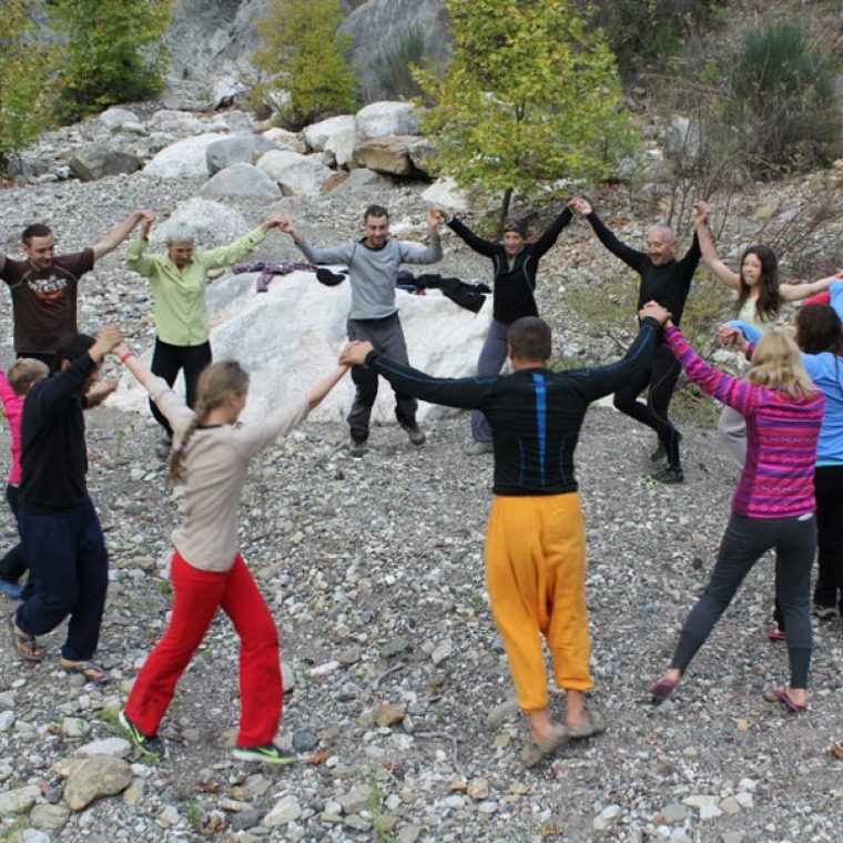 Будильник зазвенел в 6.30. Сходил в кусты, ну, а что было дальше, можно уложить в два слова: началась йога. С ковриками собралась почти вся группа, кроме наших кулинаров. И понеслась… И так, и эдак меня старались завязать, стараясь при этом внушить, что мне это очень нравится. А у меня в голове застряла упорная мысль «А когда завтрак?». Поэтому в дебри йоги я сильно не вникал из боязни, что из нирваны не сумею выйти и до обеда.