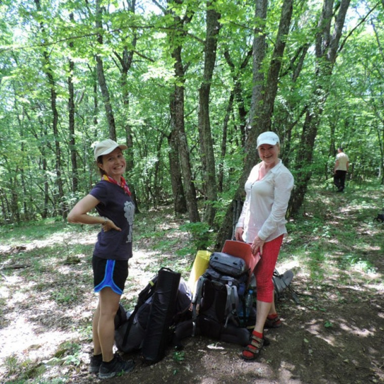 Новый день: Наконец тучи сжалились над нами, разомкнули свои объятия и подарили кусочек голубого неба. Утренняя пробуждающая и запускающая все процессы в организме йога, приветствие и благодарность солнечному свету зарядили на покорение горных вершин. На повестке дня встал сложный вопрос: продолжать маршрут, идти на восток, где непременно будут дожди, спускаться в Хапкальское ущелье по размокшей дороге или всё-таки взять смелость и пойти в неизведанное, неожиданным маршрутом, на юг, довериться жизни и нашим проводникам? Конечно, мы выбрали второе, и насколько это было верное решение!