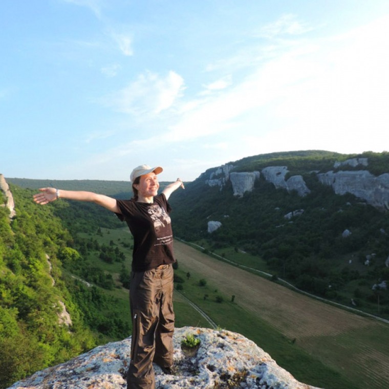 Многие туристы знают, что иногда спуститься намного труднее, чем подняться, это был тот случай, но мы с честью одолели и это. Награда не заставила себя ждать: поездка на комфортном мини-автобусе – и перед нами раскрылась, нет, не другая часть Крыма, не другая страна – другая планета, настолько разительным был контраст! Залитые мягким солнечным светом, пещерные города манили заглянуть к ним в гости, чем мы не преминули воспользоваться! Пройдя по пути, где просветленные люди меняли свой облик с человеческого на птичий, почувствовав легкость и свободу их преображенных состояний, по Золотой тропе путешественники прибыли в могущественный Эски-Кермен, державшийся в многодневной осаде, сраженный предательством и павший на растерзание врагам. В какой-то момент, за сбором веточек для костра, я до мурашек ощутила себя жительницей древнего города. Палатки здесь были ни к чему, все захотели ночевать под звездным мистическим небом.