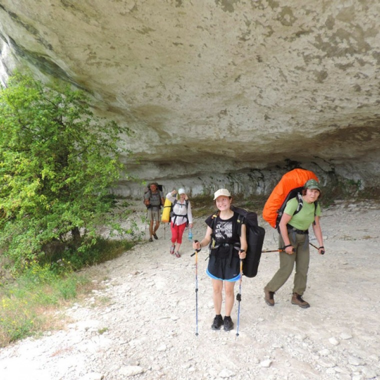 В Кобалар-Дере находим отличное место для лагеря, ветви и кроны деревьев над нами образуют высокий купол, а Кобалар-Су по ходу своего течения вымывает настоящие ванночки, отлично подходящие для купания. Оставив рюкзаки, налегке мы решили совершить экскурсию к Фатьма-Коба – величественному таинственному гроту, где обитали пещерные люди. После такого зрелища речь зашла о смысле жизни, собственном предназначении, где многие, и я том числе, смогли получить нить Ариадны для дальнейших поисков.