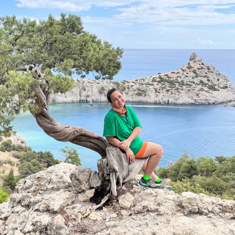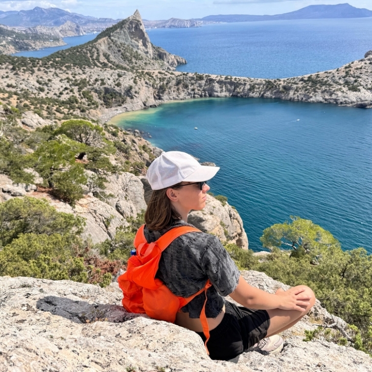 В-третьих, Новый Свет. Сегодняшние виды, особенно у мыса Капчик, где мы лазили по всем уголкам, были потрясающими. Особенно запомнился подъем на "Пик Космоса". Оттуда открывается такой вид! Атмосфера там была дикой, почти безлюдной, что позволило полностью погрузиться в красоту природы. Чувствовалось легкое уединение, но в самом лучшем смысле – когда ты можешь сосредоточиться только на окружающем воздухе, соснах, море, его цветах.