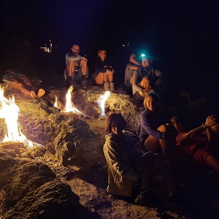 Йога в походах с клубом не является обязательным элементом программы. И всё же мы рекомендуем в ней участвовать, ведь это прекрасный способ проснуться и размяться! Тем более что программа йогических практик полностью подходит для новичков. После йоги инструктор кормит группу вкусным завтраком и мы, собрав лагерь, отправляемся в путь. Переход нам предстоит небольшой. Уже совсем скоро мы окажемся около уникального природного явления – Огней Химеры. Это языки пламени, которые вырываются из-под земли и особенно красивы в ночное время! Название этого природного явления напрямую связано с древней легендой, согласно которой огненные языки являются дыханием хтонического чудовища, запертого в разломах под землёй. Однако на самом деле это просто выбросы метана. Мы вернёмся к этому чуду природы в ночное время, когда тут будет красивее всего, а пока что наш путь лежит в посёлок Чирали, где нас ждут апельсины и турецкие вкусности.