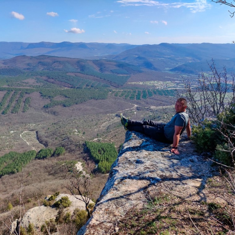 Сегодня у нас небольшой переход, поэтому с утра мы не будем торопиться. Спускаясь по Алимовой балке, мы будем любоваться многочисленными полянами цветов и благоухающих весенним цветением деревьев. Спустившись в долину, мы перейдём по мосту через речку Кача и поднимемся на хребет Беш-Текне. Наша стоянка расположена недалеко от смотровых площадок с красивейшими обрывистыми стенами, уходящими вниз на десятки метров. Отсюда открывается великолепный вид на долину реки Кача, Чатыр-Даг и окрестные горы-куэсты. Около обрыва цветут пионы, в лесу – подснежники и заросли кизила.