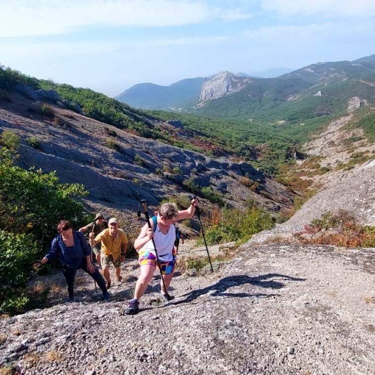 Сегодня нас ждёт поход на хребет Эчки-Даг, самую высокую его вершину – гору Кара-Оба, высота которой 670 метров, и две другие вершины – Куш-Кая и Кокуш-Кая. Отсюда открываются прекрасные виды на Кара-Даг, бухту Лисья и близлежащие горы! Также мы посетим карстовое образование – пещеру Ухо Земли, глубина которой 132 метра. Говорят, что сама Земля может услышать человека через это «ухо», и если туда крикнуть своё желание, оно непременно сбудется.Далее дойдем до сосны, растущей горизонтально из скалы над обрывом, у неё даже есть имя «Крыло Дельтаплана», пройдем по всему хребту Эчки-Дага и выйдем на дорогу, где и заберет нас наш заказной трансфер.