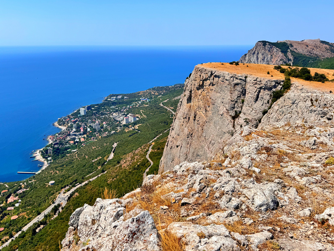 Погруженные в созерцание этой красоты, мы незаметно достигнем нашей цели. Первая смотровая точка – гора Кильсе-Бурун – покорит вас своими панорамными видами. Отсюда открывается захватывающая перспектива на южный берег Крыма, с его живописными бухтами и крошечными домиками, рассыпанными вдоль побережья. На краю обрыва, над скалами, уходящими вглубь на десятки метров, всегда ощущаются восходящие потоки воздуха. Стоя на вершине, кажется, будто паришь в небесах.