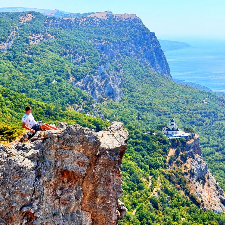 Продолжим путь по яйле, наслаждаясь панорамами моря, откуда виден Форосский храм, словно парящий над обрывом. Это место, где природа и человеческое творение сливаются в единое целое, напоминая о чудесном спасении царской семьи.