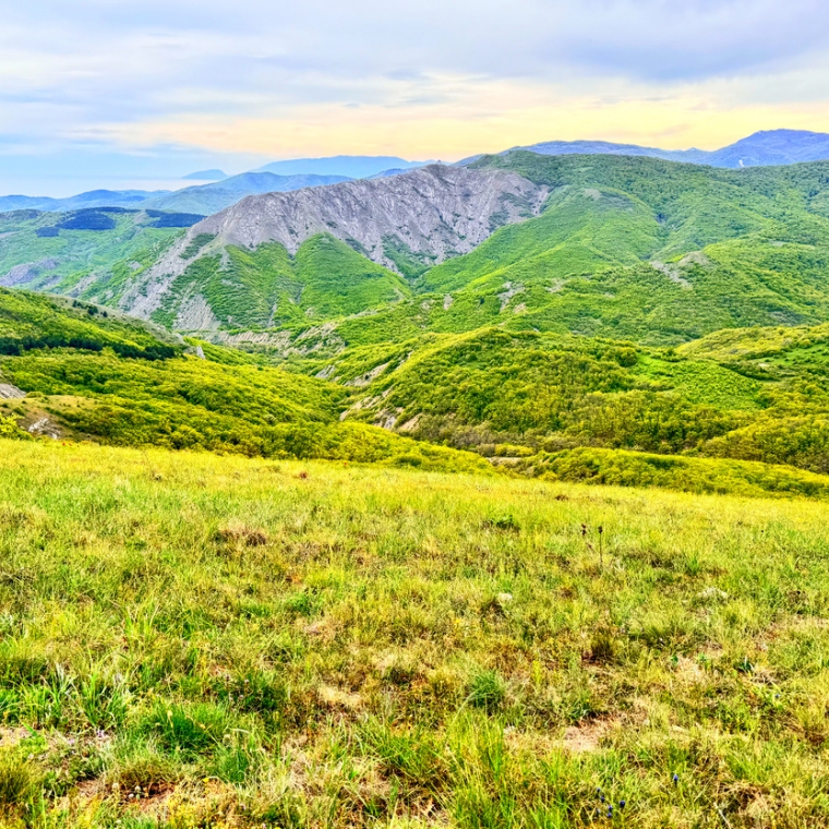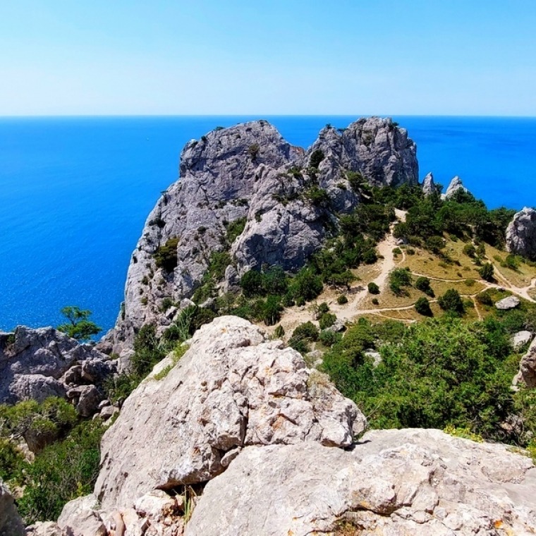 Подъём на гору сегодня будет непростым. Сначала нам придётся преодолеть крутой каменный склон, почти без деревьев. Но неспеша, шаг за шагом достигнем вершины горы Лер-Кая. Постепенно склон станет более пологим, и мы, идя по тропинке, которая ведёт нас всё выше и выше, достигнем высоты 829 метров над уровнем моря. Это вершина горы Чок-Сары-Кая. Награда за наши усилия будет стоить того — потрясающий вид на окрестности с вершины горы, захватывающие дух пейзажи. Зелёные склоны, покрытые цветами, сменяются скалистыми выступами, создавая неповторимый пейзаж. С высоты птичьего полёта открывается вид на бескрайнее море, которое сливается с горизонтом.