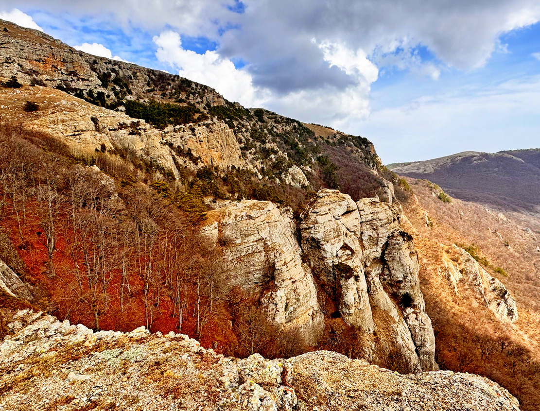 Добравшись до плато, мы пройдем совсем немного и окажемся на смотровой площадке. Нас ждет гора Козырёк, откуда открываются поистине умопомрачительные пейзажи! Перед нами, словно на ладони, раскинутся Бабуган-яйла и Чатыр-Даг, а внизу уютно расположится Алушта, за которой до самого горизонта простирается бескрайнее синее море. Прямо под нами будут виднеться живописные скальные отроги, уходящие вниз на целых 100 метров! Сделав множество потрясающих снимков на память и вдоволь налюбовавшись этой красотой, мы начнем наш путь обратно.