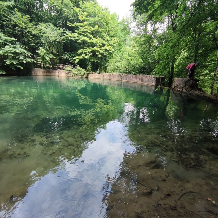 Голубое озеро – довольно крупный, по меркам Крыма, озёрный водоём. Желающие смогут искупаться в нём, однако стоит учитывать, что даже в летнее время температура воды здесь не превышает десяти градусов. По легенде, каждый, кто искупается в озере, обретёт истинную любовь, поэтому оно имеет второе название – озеро Любви. От него мы выйдем на тропу, ведущую наверх.
