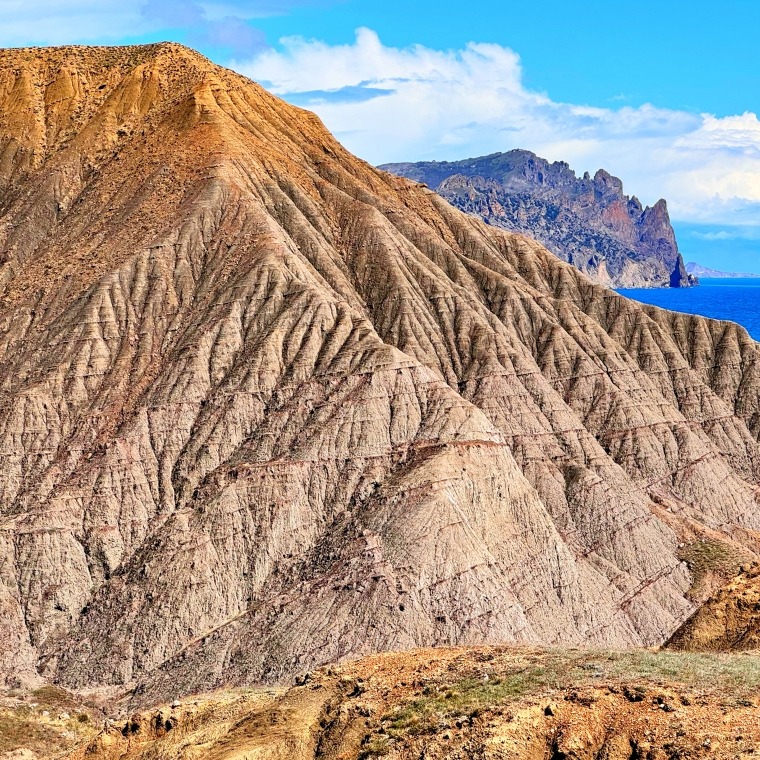 Алчак-Кая - это настоящая жемчужина восточного Крыма! Находится она недалеко от Судака, и, честно говоря, название “низкий” (а именно так переводится “алчак” с крымскотатарского) - это скорее комплимент её доступности для туристов.Высота горы всего 152 метра, но это не делает её менее интересной! Представьте себе: древний коралловый риф, сложенный из серых мраморовидных известняков, который сейчас превратился в настоящий природный парк.Одна из главных фишек - это “Эолова Арфа”, потрясающая скала с большим сквозным отверстием. Это природное чудо образовалось благодаря многовековому выветриванию известняка, и выглядит просто завораживающе!